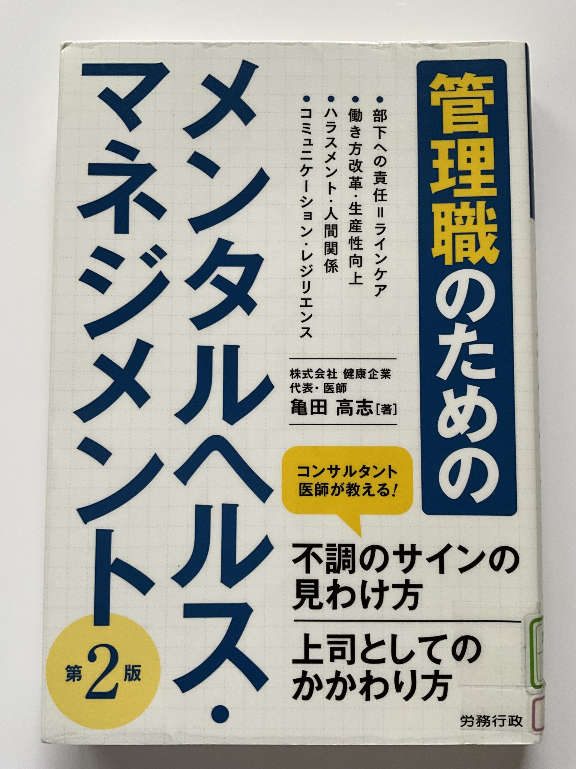 今回紹介する本は、「管理職のためのメンタルヘルス・マネジメント(亀田 高志 著 労務行政)」です。